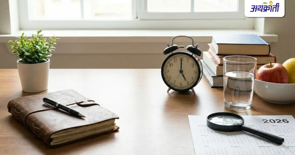 लवकर उठणे ही यशस्वी जीवनाची पहिली पायरी मानली जाते. सकाळची वेळ अत्यंत शांत, स्वच्छ आणि सकारात्मक असते. या वेळी आपले मन अधिक एकाग्र असते आणि विचार स्पष्ट होतात. २०२६ मध्ये लवकर उठण्याचा संकल्प केल्यास आपल्याला दिवसासाठी योग्य नियोजन करता येते. सकाळी उठल्यानंतर थोडा वेळ स्वतःसाठी दिल्यास आत्मपरीक्षण, वाचन किंवा शांत विचार करण्याची सवय लागते. यामुळे आत्मविश्वास वाढतो आणि मानसिक ताजेपणा टिकून राहतो. उशिरा उठल्यामुळे घाई, ताणतणाव आणि कामातील गोंधळ वाढतो, तर लवकर उठल्यामुळे वेळेचे योग्य व्यवस्थापन करता येते.