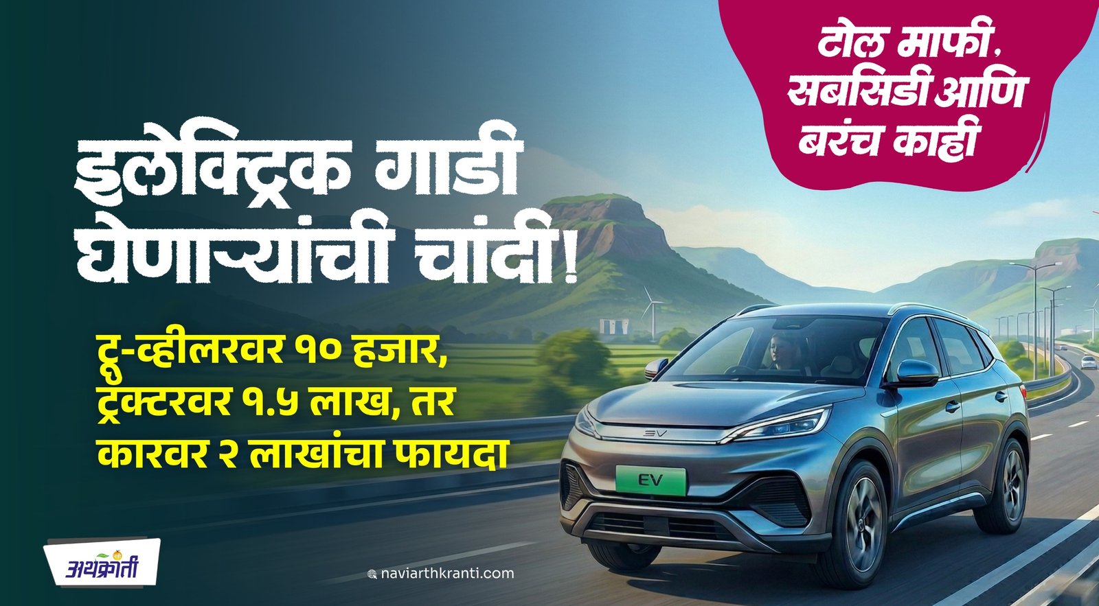 जर तुम्ही नवीन गाडी घेण्याचा विचार करत असाल, तर हा व्हिडिओ पाहिल्याशिवाय शोरूममध्ये जाऊ नका! कारण महाराष्ट्र सरकारच्या ‘ईव्ही पॉलिसी २०२५’ मुळे तुमचे लाखो रुपये वाचणार आहेत. टू-व्हीलरपासून ते थेट ट्रॅक्टरपर्यंत भरपूर सबसिडीचा मिळतेय आणि सर्वात मोठी गोष्ट म्हणजे— आता एक्सप्रेसवेवर टोल सुद्धा माफ होणार आहे! चला, ‘नवी अर्थक्रांती’ मध्ये या ईव्ही क्रांतीचं सत्य जाणून घेऊया.