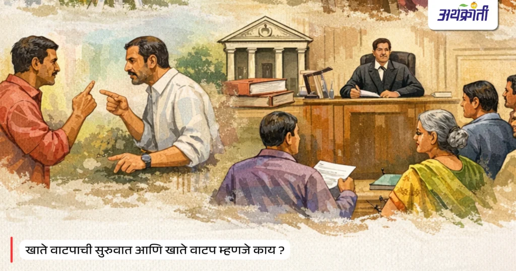 ग्रामीण महाराष्ट्रातील अनेक कुटुंबांसाठी जमीन म्हणजे केवळ मातीची ढिगं नव्हे; ती त्यांच्या पिढ्यानपिढ्यांच्या संघर्षाची, कष्टाची आणि आजी-आजोबांच्या आशीर्वादाची परंपरा असते. घरातील मोठ्यांच्या निधनानंतर किंवा वारसा नोंदीत बदल आवश्यक असताना “खाते वाटप” ही प्रक्रिया कुटुंबाला नव्याने उभी राहण्यासाठी अत्यंत महत्त्वाची ठरते. परंतु त्या प्रक्रियेबद्दल योग्य माहिती नसल्यामुळे अनेकांना मनात भीती, शंका आणि प्रश्न असतात. जमीन वाटायची, पण कुणाचा हिस्सा कमी होऊ नये, कुणाला अन्याय होऊ नये, आणि पुढे आपापसात वाद निर्माण होऊ नयेत—याची काळजी प्रत्येकालाच वाटते.